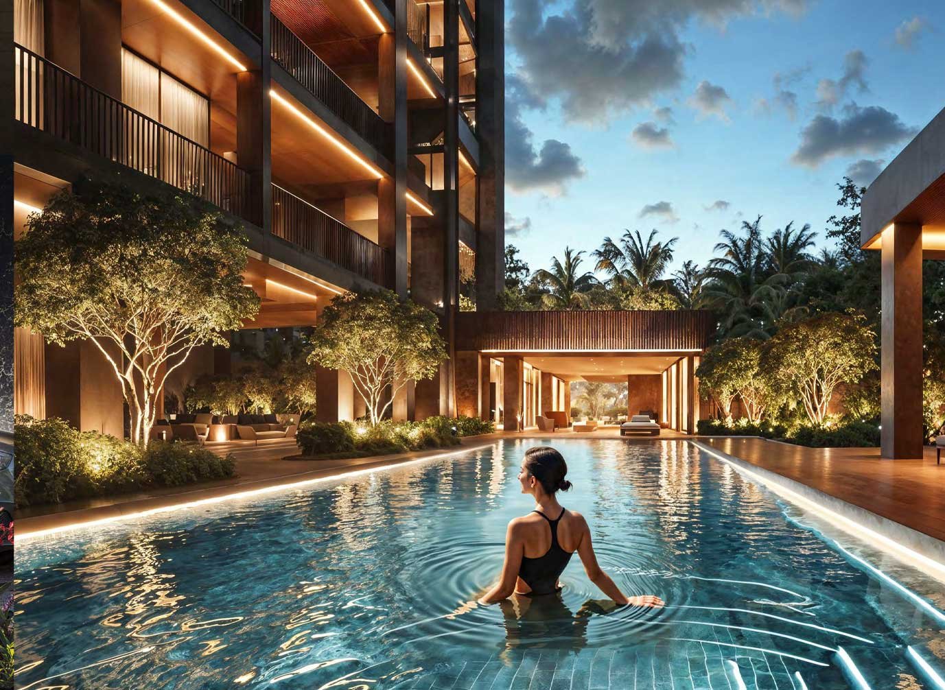 At Baya Solstice, ordinary entrances do not suit extraordinary lives. Every residence is designed for effortless living. Residents enjoy direct access to a private spa, exclusive chef’s table dining, and a rooftop infinity pool. A striking private staircase leads into a curated realm of leisure and luxury. Every return home feels like a refined escape. The development offers both indoor and open-to-sky amenities. These include dedicated wellness lounges, sky gardens, and rooftop lounges, all designed to balance comfort, recreation, and elegance.